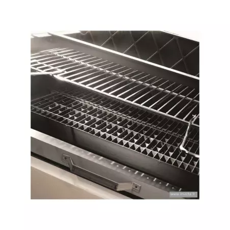 Grille foyère en fonte supportant le charbon de bois. Celle-ci peut être positionnée verticalement afin de constituer un foyer de cuisson verticale idéal pour la fonction rôtissoire