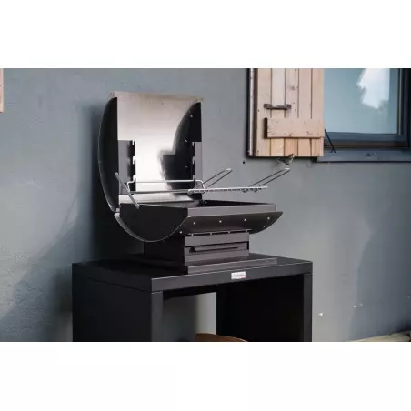 Il comporte également un tiroir à cendres pour faciliter le nettoyage. Le couvercle de protection assure une cuisson homogène et contrôlée tout en protégeant votre équipement. Le châssis est conçu en deux matériaux, l’inox satiné et l’acier peint en époxy de couleur noir, ce qui donne un look élégant et moderne.