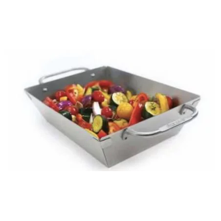 Ce panier à légume profond permet de faire cuire des légumes sur le barbecue sans que ceux ci ne puissent tomber entre les grilles, ou ne restent accrocher.